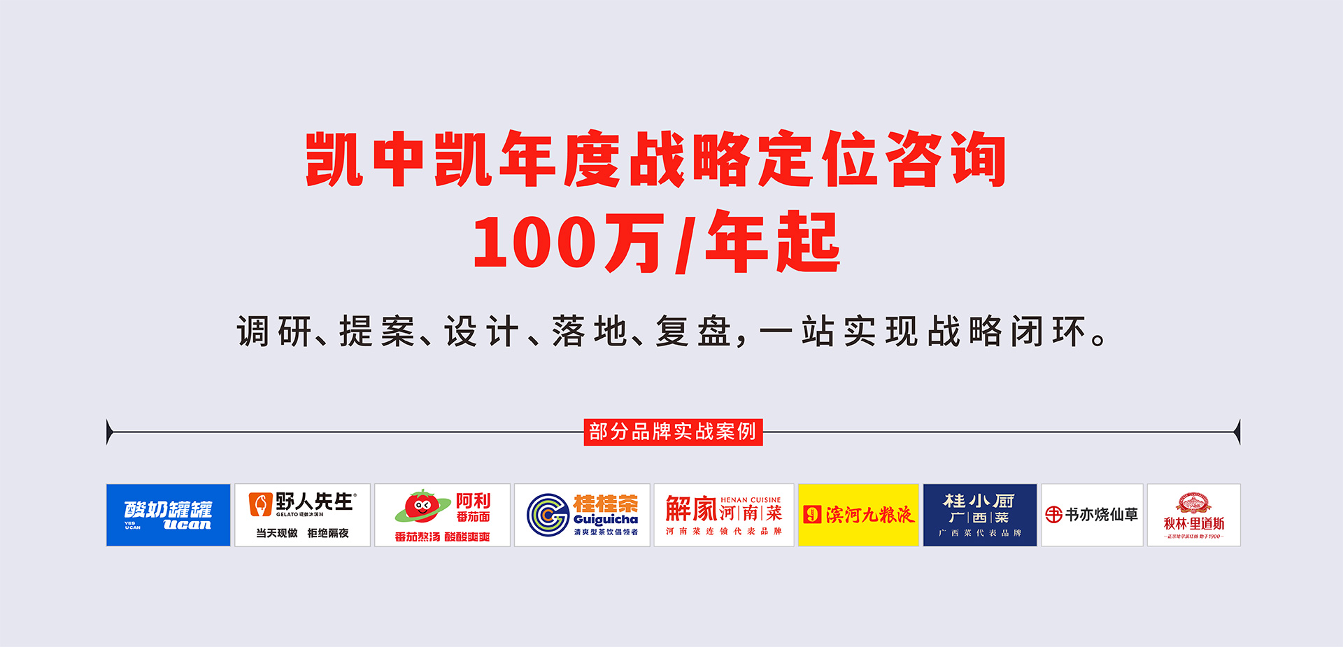 凱中凱核心創始團隊,曾通過40多期的戰略定位咨詢課程,為1000家以上的企業提供戰略輔導,其中連鎖餐飲和快消品企業居多,積累了大量案例經驗。十年來,很多連鎖餐飲和快消品企業選擇了凱中凱為其提供長期戰略咨詢服務,實現了戰略突破,獲得顯著成功。如:濱河九糧液、野人先生現做冰淇淋、酸奶罐罐、解家河南菜、桂小廚廣西菜、桂桂茶、大張烙饃村、秋林里道斯、竹妃紙巾等。